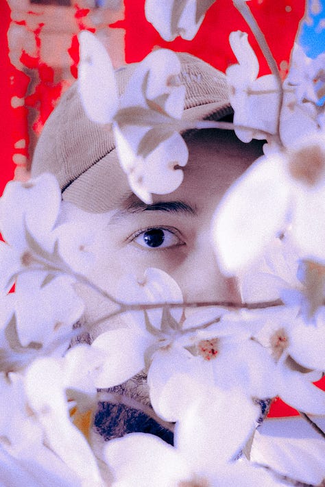 I kept walking. An idea struck me as they tend to do when I’m walking (especially without my phone or no plan). I would use the bouquet as a prop for experimental self-portraits. I had some time to kill before my friend got back from a baby shower. I’ve been taking a lot of portraits lately, and I wanted to turn the camera on myself. I wanted to do something editorial, to mess around with editing, to bring out colors that hide in the shadows, to celebrate spring. I wanted to celebrate a milestone (more on that in a later post).