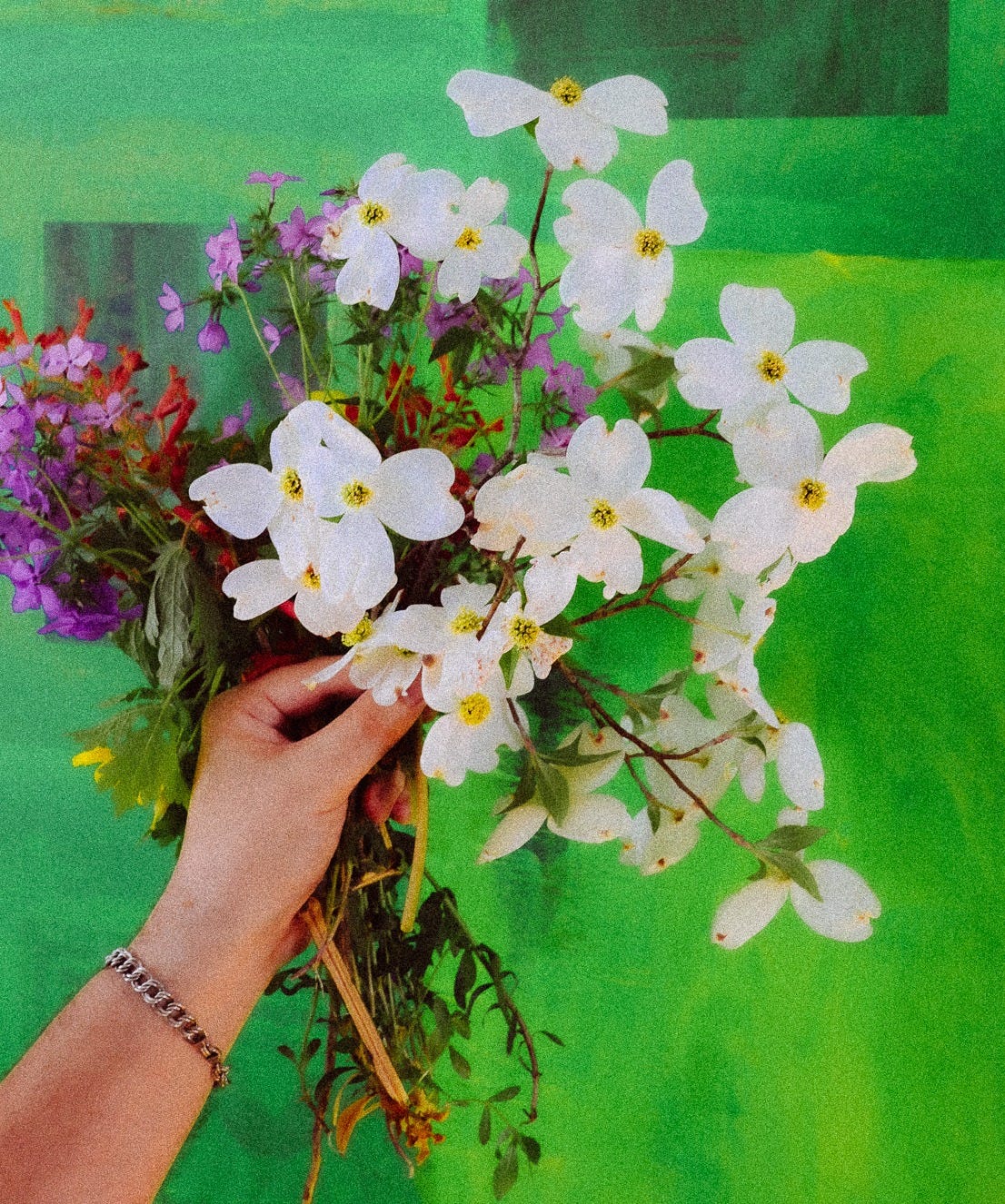 Yesterday, I practiced improvisational creativity without even realizing it. The weather was too delicious to stay inside, so I went on a walk in Overton Park. It was bursting with life. I veered deeper into the forest's inner trails and spotted vivid purple flowers bathing in the light peeking through the trees. Without thinking, I bent down to pick a bundle of them. I felt an energy telling me to keep looking, to make a bouquet of wildflowers.
